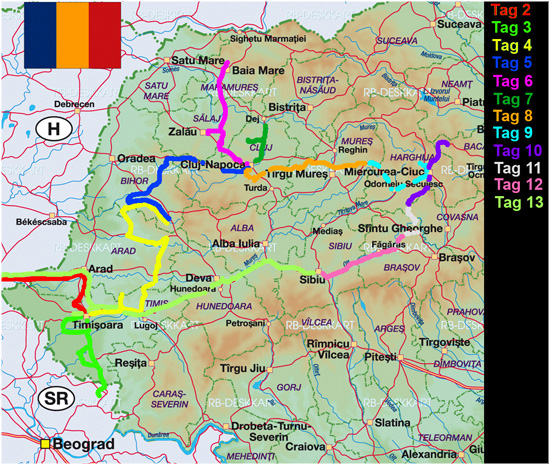 Entgegen all meiner bisherigen Rumänientrips wählte ich diesmal nicht die Anreise per Flugzeug plus Mietwagen vor Ort, sondern fuhr erstmals selbst. Es war eine reine Kostenentscheidung (da ausgerechnet kurz zuvor eine teurere, aber zwingend notwendige Reparatur dazwischen kam) - wenngleich mit meinem altersschwachen Kleinwagen auch ein Wagnis. Denn für rumänische Schotterpisten war mein Auto nicht wirklich geeignet, sodass es im Laufe dieser zwei Wochen wiederholt auf die Probe gestellt wurde und mehr als an seine Grenzen geriet...