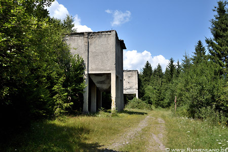 (nicht oben auf dem Berg, sondern an einem flachen Hang zwischen Tal und Hügelspitze)