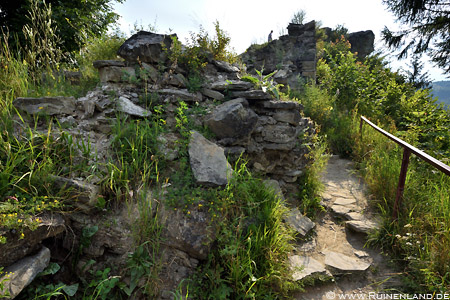 Reise-Recherche unweit der Burg unbekannte Ruinen im Wald entdeckt, die wir