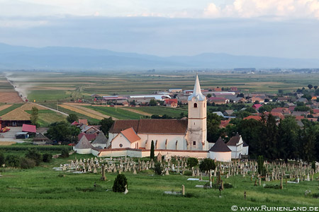 Kirchenburg aus dem 15. Jahrhundert ein, ebenso beim verlassenen (aber leider
