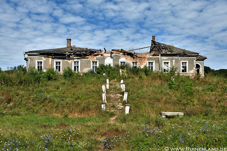 Erbaut wurde das Herrenhaus im 19. Jahrhundert von der Familie Hatfaludy für ihren Sohn István. Das Dach begann im Jahr 2016 einzustürzen und war mittlerweile fast vollständig eingebrochen. Leider wurden die kunstvollen Kachelöfen, die auf Fotos von 2017 noch vorhanden waren, zwischenzeitlich entfernt oder gestohlen.