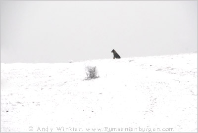 Vor meiner Abfahrt um 8.00 Uhr kam erstmals das Scheibenenteiser-Spray zum Einsatz, welches ich extra aus Deutschland mitgebracht hatte. Nach dem Tanken verließ ich Arad, auf den Straßen war Glatteis und ich hatte das Gefühl, dass es heute gar nicht mehr richtig hell werden wollte. Der erste eingeplante Fotostopp, die archäologische Ausgrabung "Valul Lui Traian" bei Sambateni, entfiel, denn an der Stelle aus meiner Karte fand sich weit und breit nur ödes Ackerland.