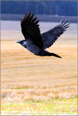 Feld saß ein Rabe, der sich beim Näher kommen in die Luft erhob und ich hatte